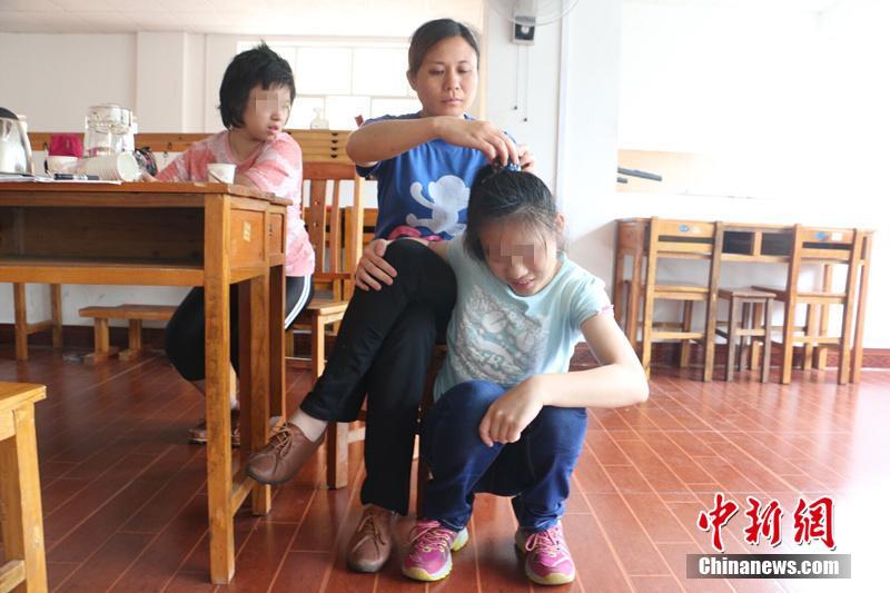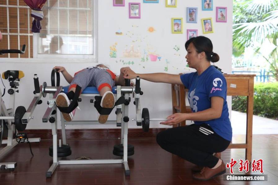 5月14日,来自广西柳州市的陈敬玉如往常一样,在其组织成立的小儿脑性瘫痪患者康复基地“希望之家”里帮助脑瘫患者做日常康复训练。图为患儿在做康复训练,练习平衡。图文:中新网 林馨 摄