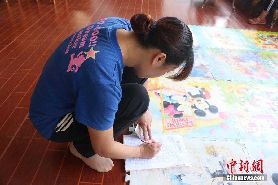 陈敬玉在记录每天康复训练内容。