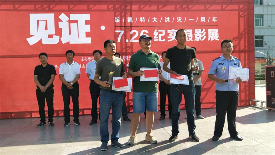 在榆林网讯:(特约通讯员 王晓伟)2018年7月26日上午,“7·26”特大洪灾一周年之际,由绥德“7·26”抗洪救灾警示教育广场建设领导小组办公室主办,榆林市凯申文化发展有限公司、榆林市摄影家协会、绥德县文学艺术界联合会承办,绥德县摄影家协会协办的“见证绥德特大洪灾一周年7·26纪实摄影展”在县政府广场举行启动仪式,绥德县公安局参赛的11幅作品获奖,其中县局的抗洪纪实视频获二等奖,王晓伟、王艺臻、王旗、李美美4人的10幅作品获优秀奖。