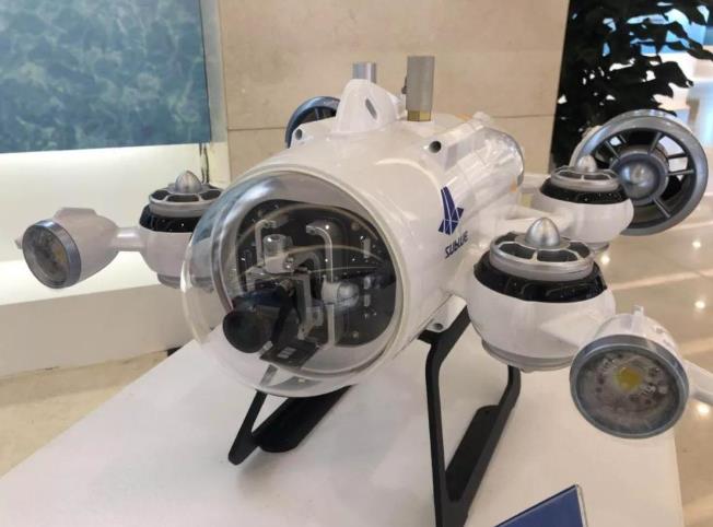 水下观测机器人,最深下潜深度可达100米。可在水下观测、寻找、协助打捞、搭载其他设备完成各类任务。通过VR头盔可以更沉浸式地观测水下情况。(央视记者王哈男拍摄)