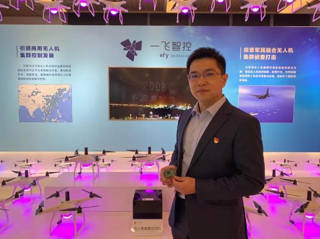 齐俊桐,一飞智控(天津)科技有限公司创始人。他向习近平介绍飞控技术的应用。(央视记者刘瑞琳拍摄)