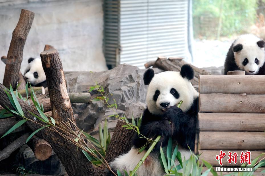 5月13日,德国柏林动物园发言人向中新社记者表示,柏林动物园在供应竹子方面未受新冠疫情影响,目前旅德大熊猫一家四口健康状况均十分良好。园方表示,除周末和节假日等入园游客较多的时段外,人们已可在大熊猫馆见到双胞胎“梦想”“梦圆”的身影。这对双胞胎的体重均已达到19公斤左右。图为大熊猫双胞胎“梦想”“梦圆”与母亲“梦梦”在大熊猫馆亲子乐园内。(1月29日资料图)中新社记者 彭大伟 摄